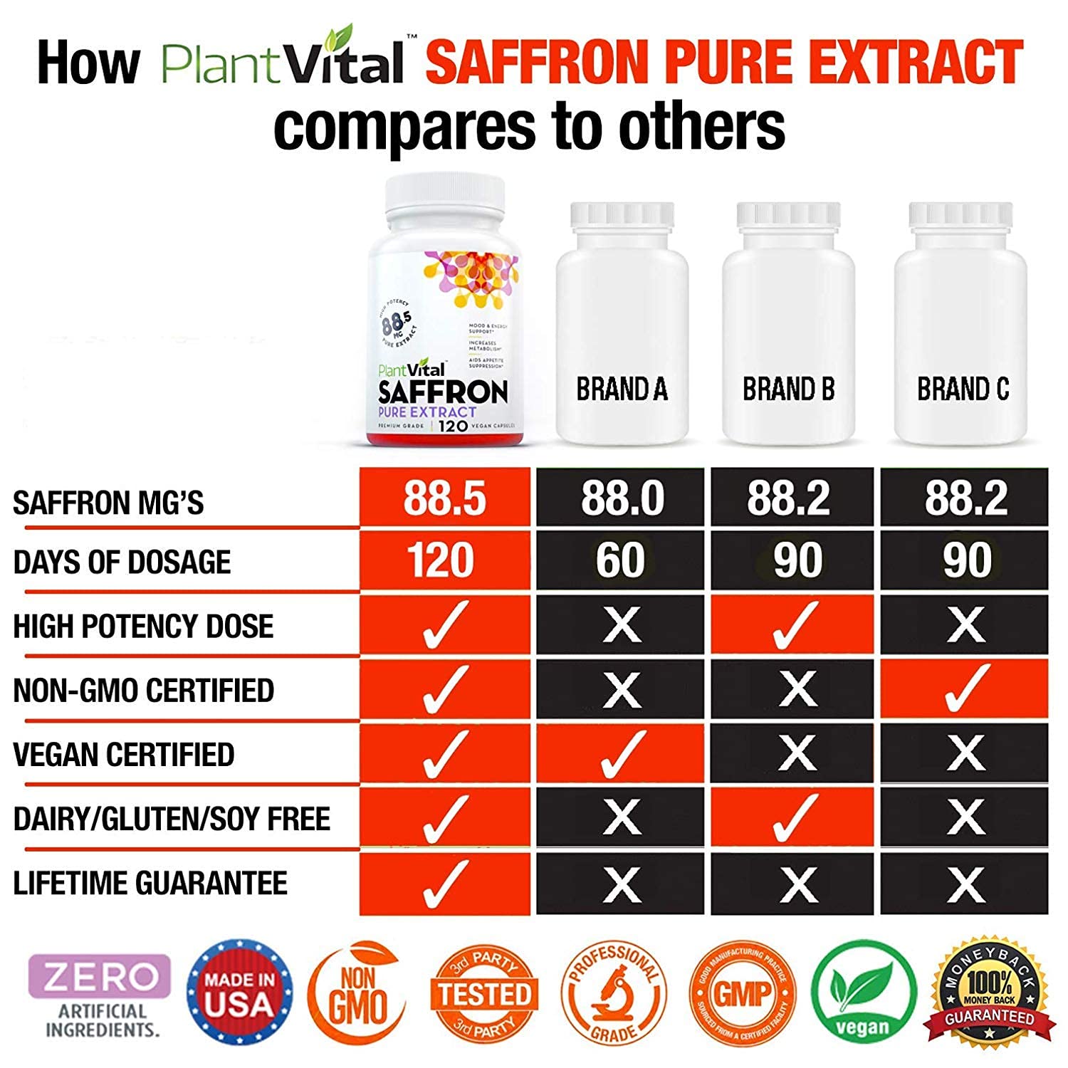 - OUR GUARANTEE: One capsule two times per day is all you need to get the maximum potency of saffron. We make high quality supplements to support your overall health and wellness and back them with a lifetime guarantee.
