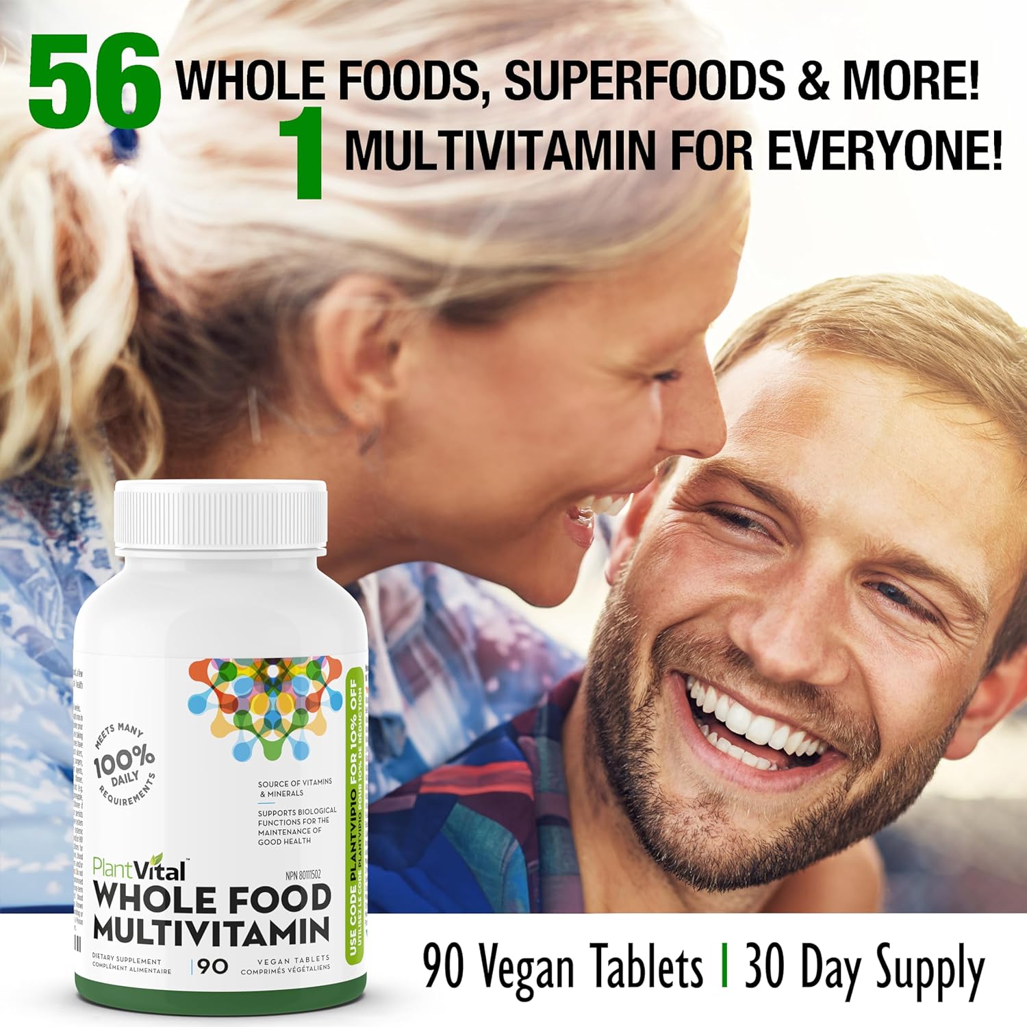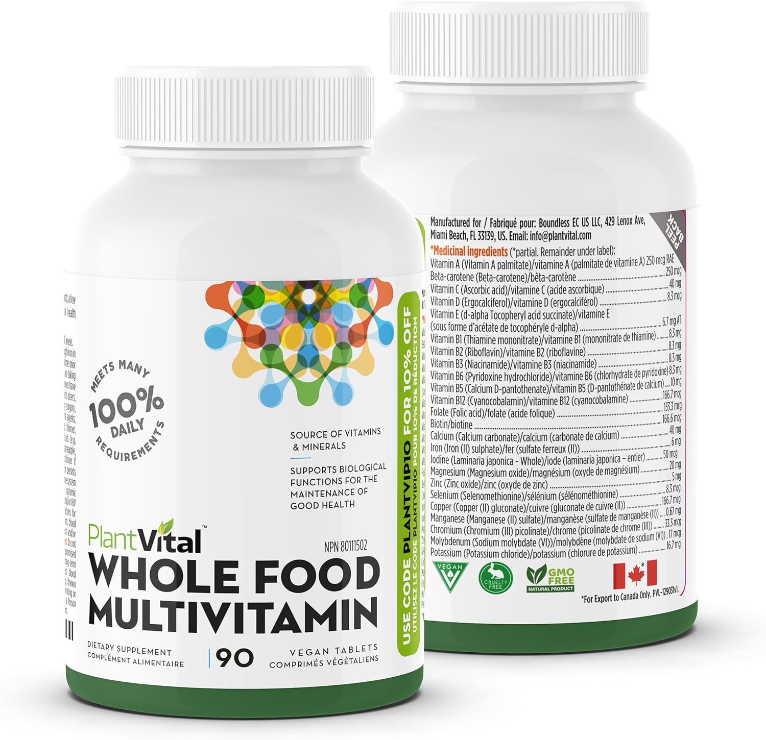 - POTENT MULTIVITAMIN: PlantVital Whole Food Multivitamin: Our vegan multivitamin is made with almost 100% whole-food vitamins, delivering a pure energy source with no stimulants. Plus, it's free from ragweed, soy, wheat, gluten, or dairy.