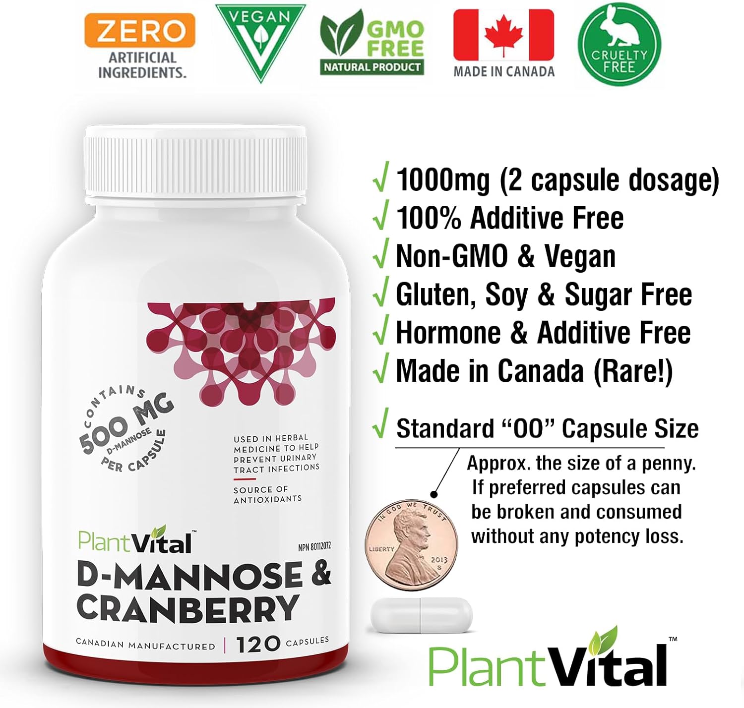 PLANTVITAL TRUST: Quality-assured DMannose pills with cranberry extract. US-made for superior urinary and bladder health. A family-owned business committed to your satisfaction. Get a full refund if you are not 100% satisfied.