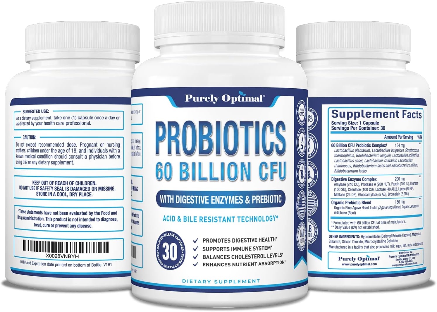 Premium Probiotics 60 Billion CFU with Organic Prebiotic, 30 count
