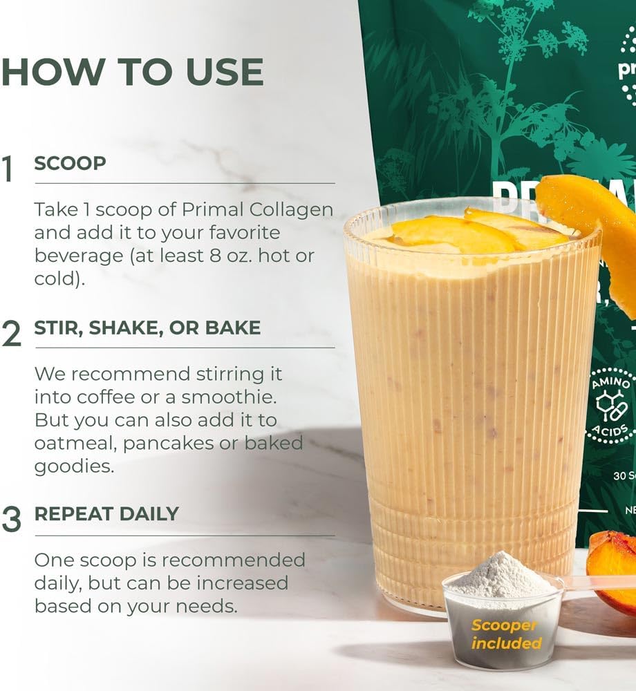 - Packed with Amino Acids: Each serving of the Primal Collagen contains 9 essential amino acids along with 9 grams of protein to help promote a healthy glow that starts from within