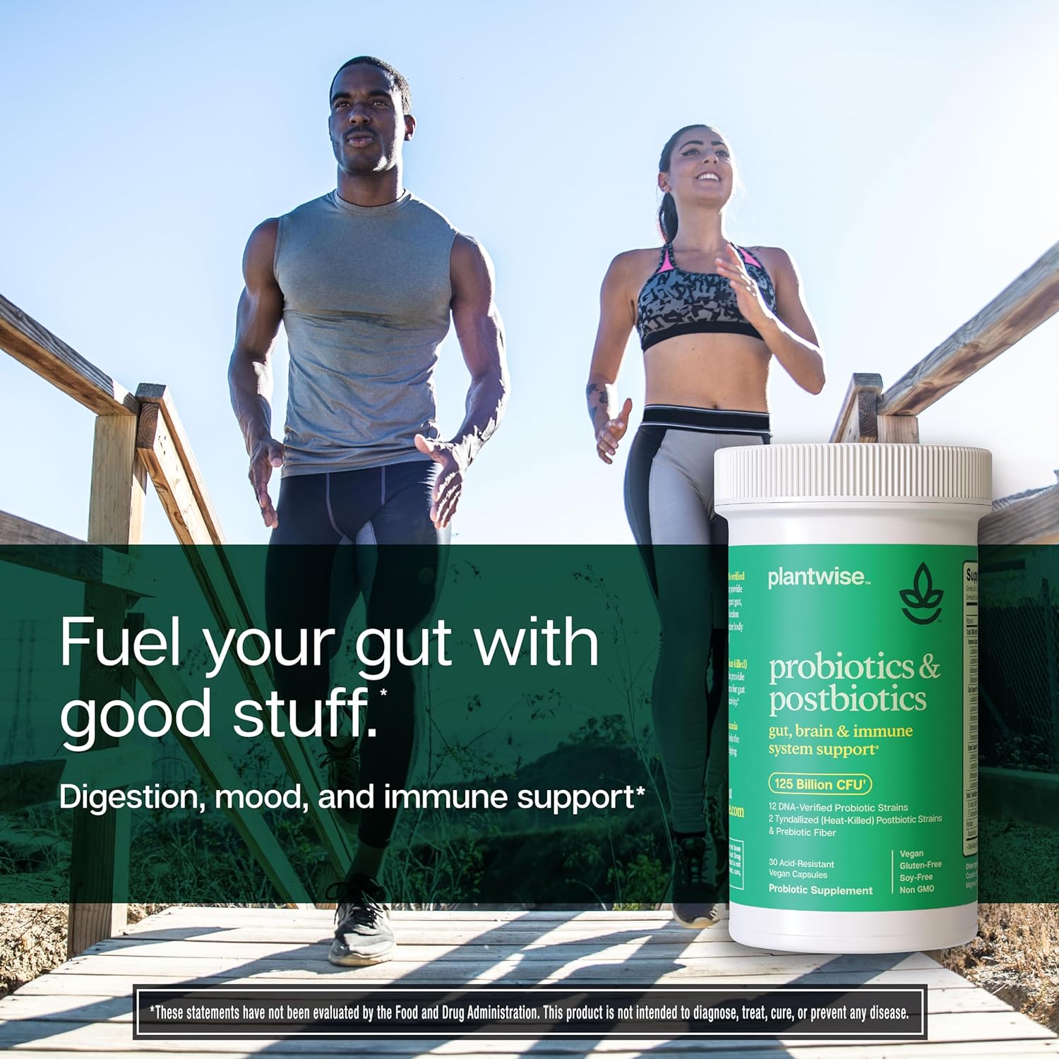 - PROBIOTIC, POSTBIOTIC and PREBIOTIC 3-IN-1 FORMULA: The Plantwise Vegan Probiotic and Postbiotic was designed by a clinical nutritionist using studied strains for gut microbiome health and balance - Fuel for good gut feelings* Non-GMO, Gluten-free, Vegan Probiotic, Soy-Free, Dairy Free - cGMP Manufacturing Facility, Third-Party Tested - CSP Bottle to help maintain culture health - Acid Resistant Capsule