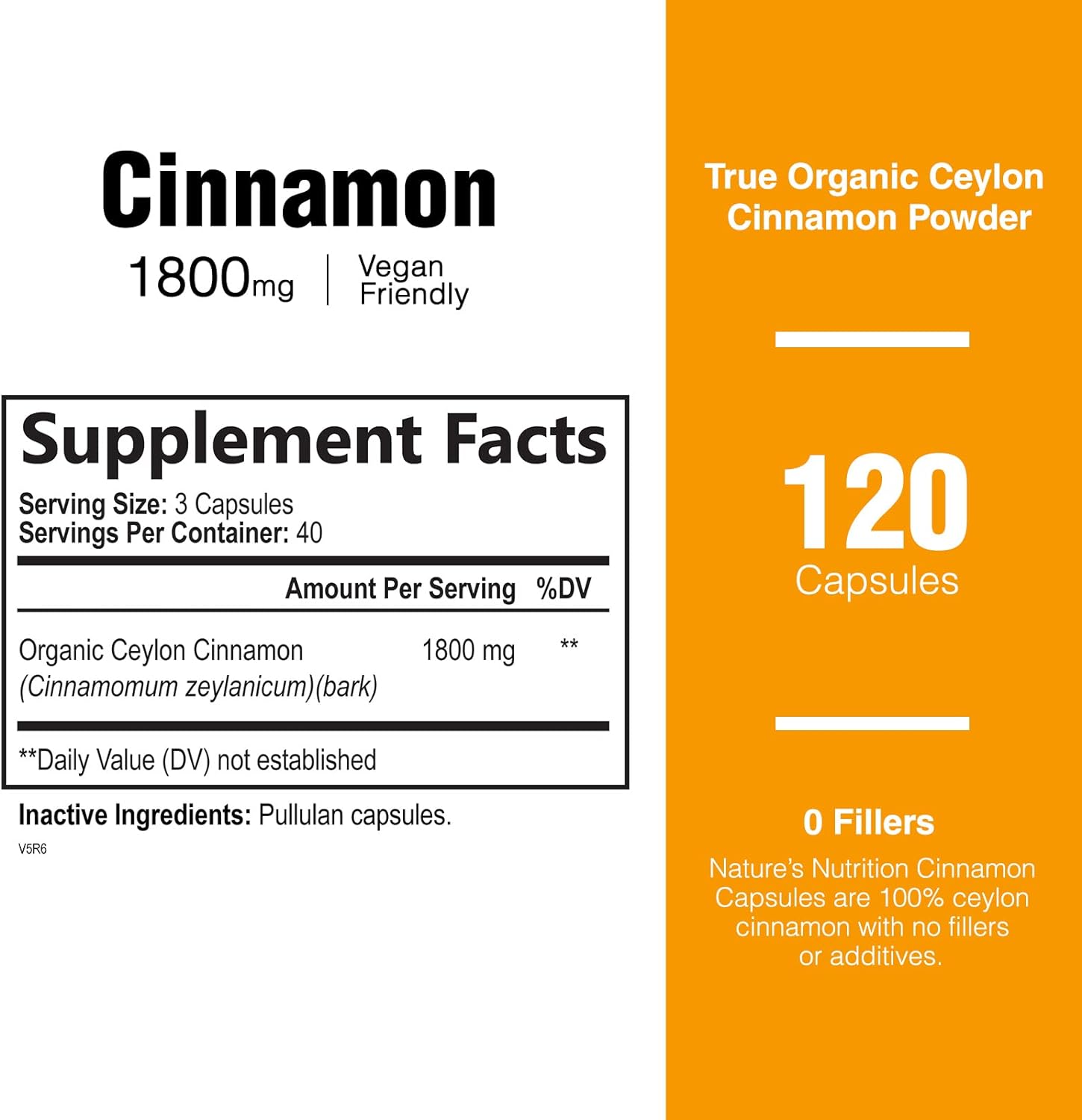 Certified Organic Ceylon Cinnamon Supplement: Nature's Nutrition cinammon capsules 1800mg vegan true cinnamomum verum cassia 1000 mg 1000mg 1200 1800 2000mg 500mg brown real cylon cinamon extract powder pills capsulas de canela ceyon cinimon natures supplements cimmon cinnomin ground powdered cinnamin nutrition raw cimminon