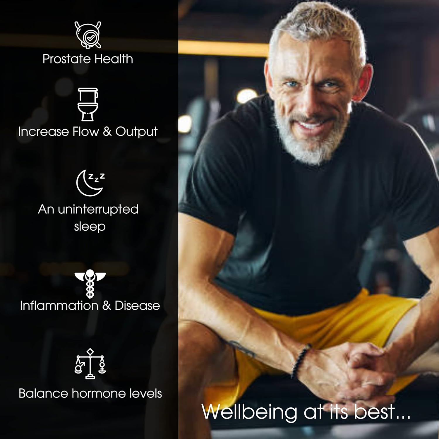Saw Palmetto Fruit, Stinging Nettle Root, Beta-sitosterol, Pygeum Bark, DIM, Zinc (AAC), Lycopene, Boron, Vegetable Capsule