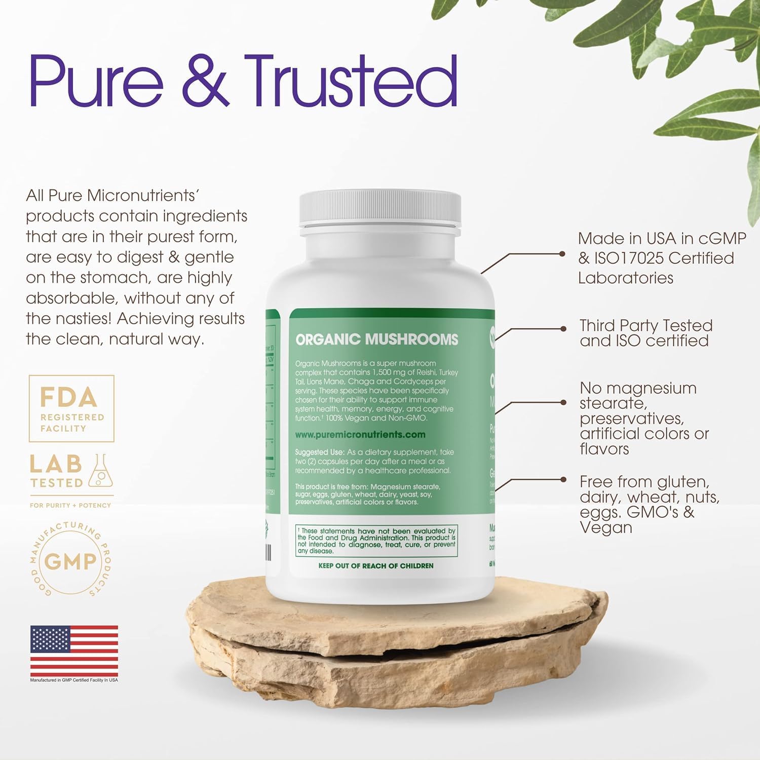 Pure Micronutrients Organic Mushroom Supplement - 60 capsules