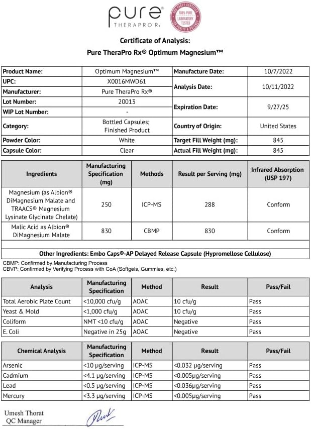 - PURE AND POTENT: Optimum Magnesium is manufactured in the USA in a GMP-certified facility to ensure superior quality and potency. It is free of wheat, gluten, corn, yeast, soy, animal or dairy products, fish, shellfish, peanuts, tree nuts, egg, ingredients derived from genetically modified organisms (GMOs), artificial colors, & artificial flavors.