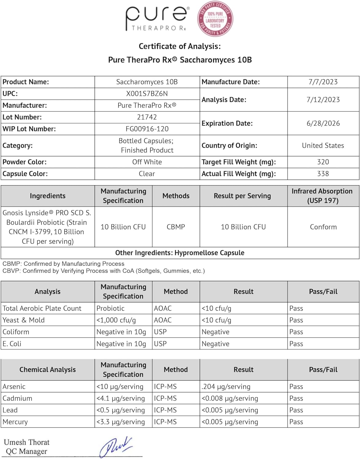 Pure Therapro Rx Saccharomyces 10B - Saccharomyces Boulardii, 120 Count