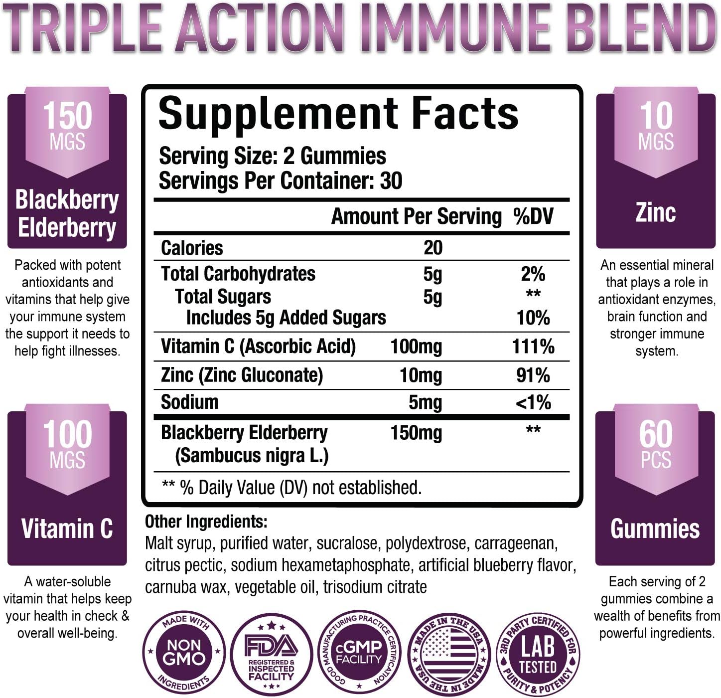 - Benefits & Taste You'll Love: While many people take supplements for health-boosting benefits, not everyone gets to enjoy a delicious treat while getting their daily dose of vitamins! Our Elderberry Gummies are so good you’ll look forward to taking it every day, which means you won’t miss out on the immune defense your body needs to keep you strong!