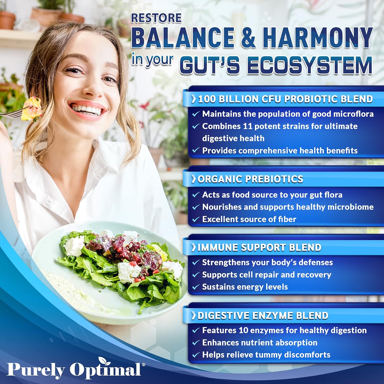 Purely Optimal Premium Probiotics 100 Billion CFU w/Digestive Enzymes