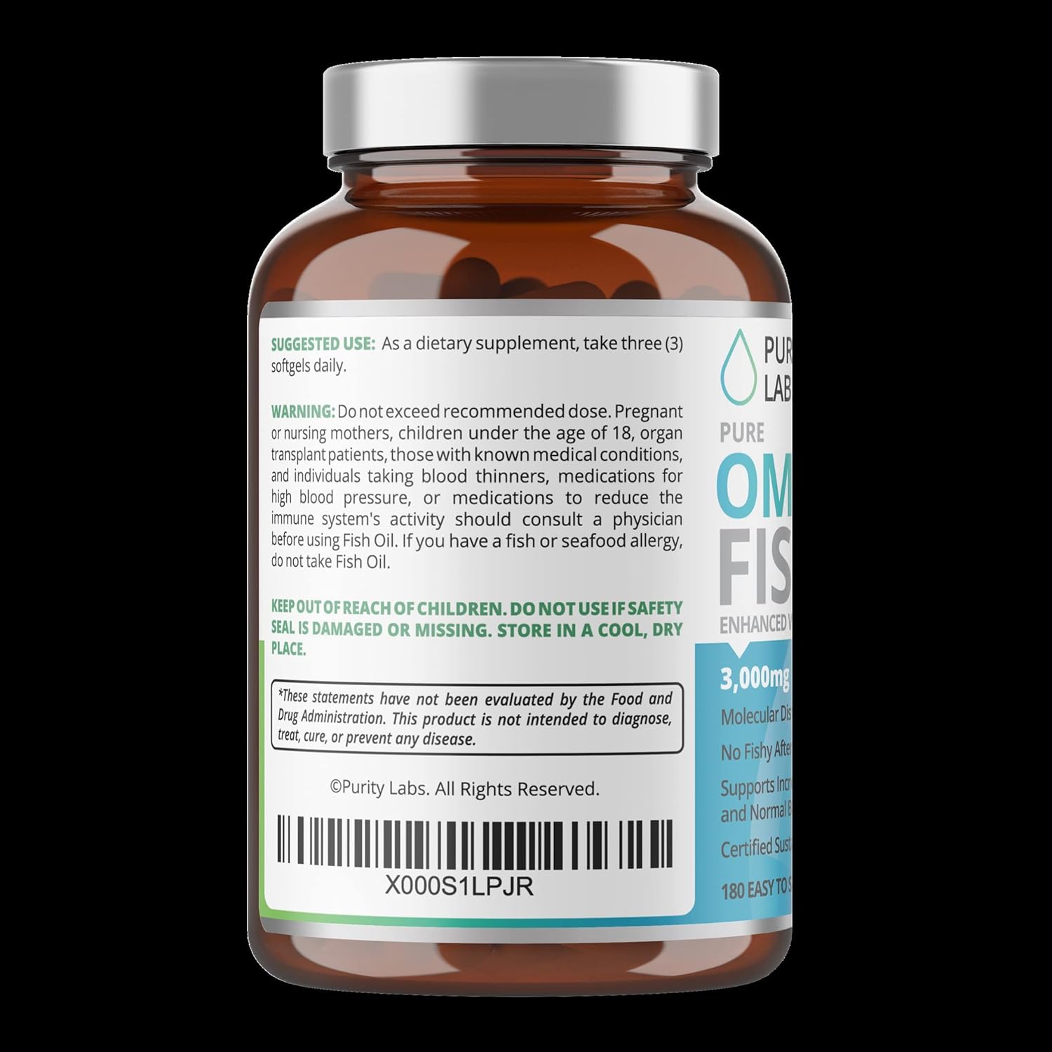 - PURITY PLEDGE - Purity Labs only uses pure, non-GMO ingredients. Our supplements use primarily natural ingredients that are without gluten, soy, sugar, preservatives, and artificial colors. Get only the best with our omega 3 fish oil 3000mg capsules.