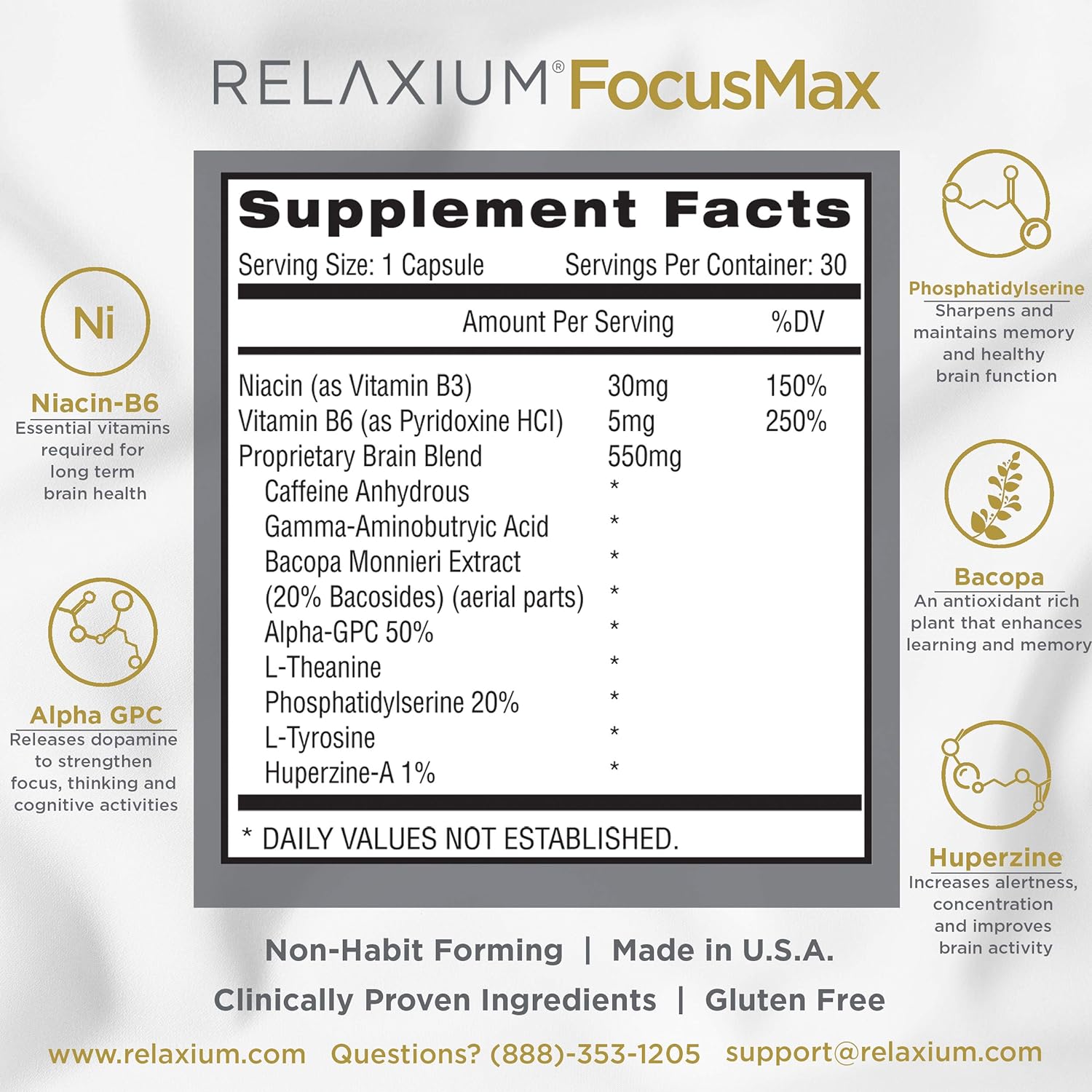 Relaxium Focus Max, Brain & Focus Health Supplement
