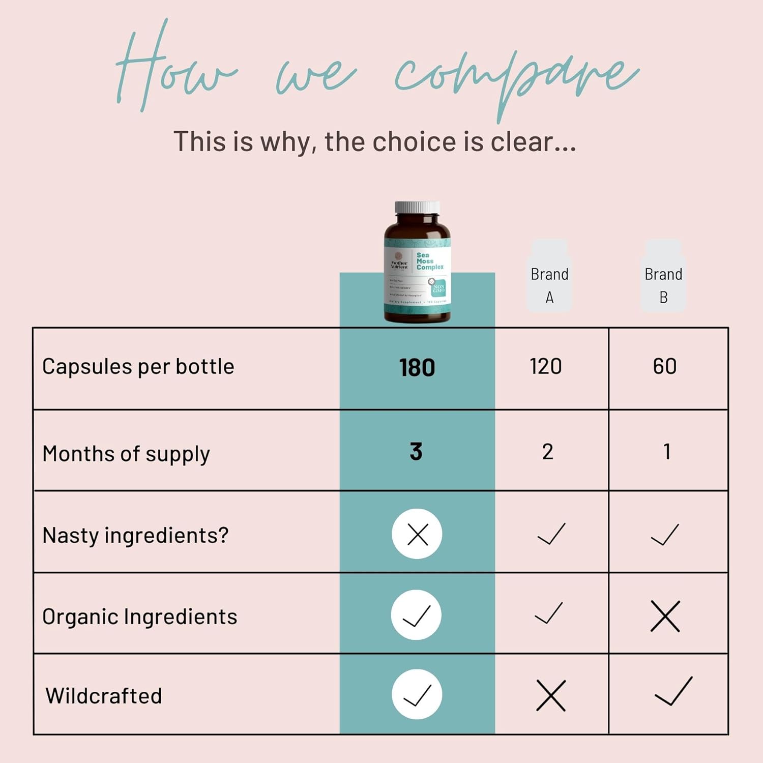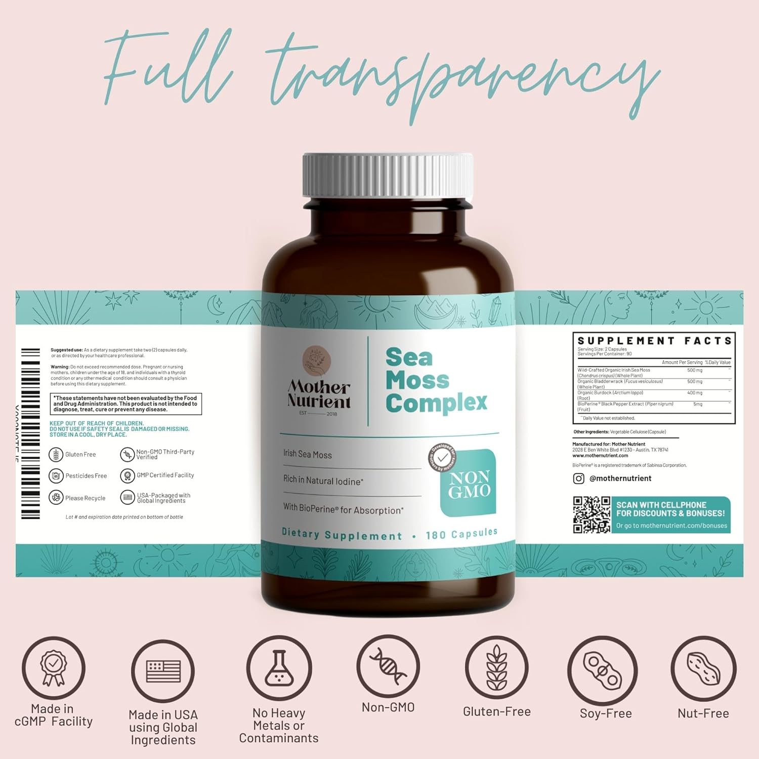 Sea Moss Capsules Complex with Wildcrafted Irish Sea Moss,180 Capsules