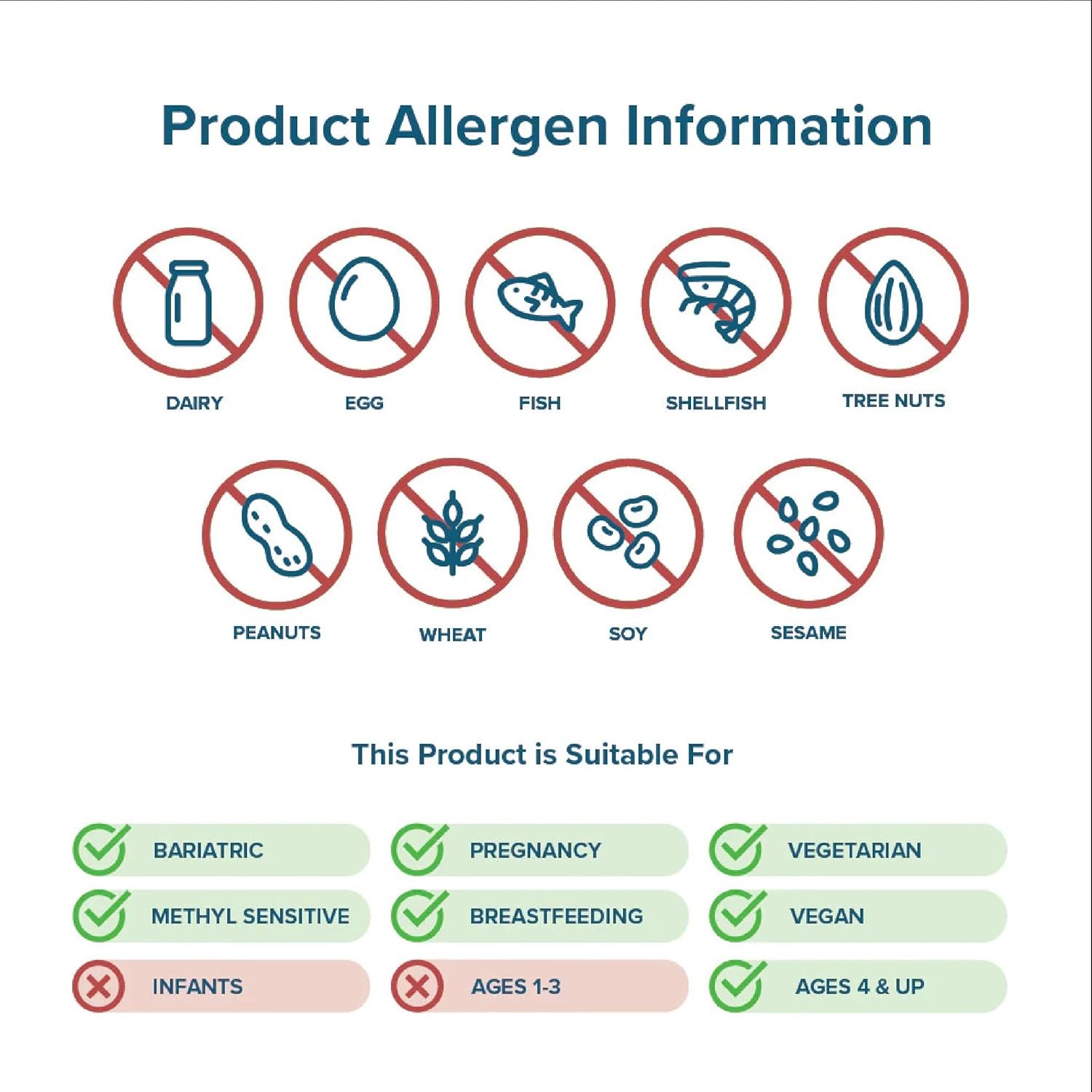 - Allergen-Friendly Heart Support: This vitamin B12 supplement is free of GMOs, gluten, eggs, fish, shellfish, tree nuts, peanuts, wheat, sesame, and soy