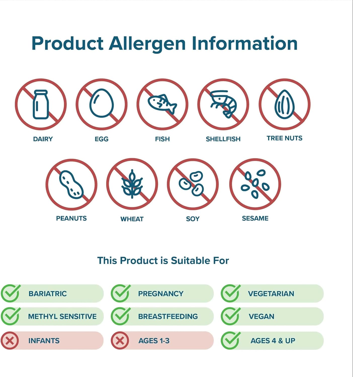 - Free from: Eggs, fish, gluten, GMO, dairy, peanuts, shellfish, soy, sesame, tree nuts, wheat, gluten, artificial colors, and artificial preservatives
