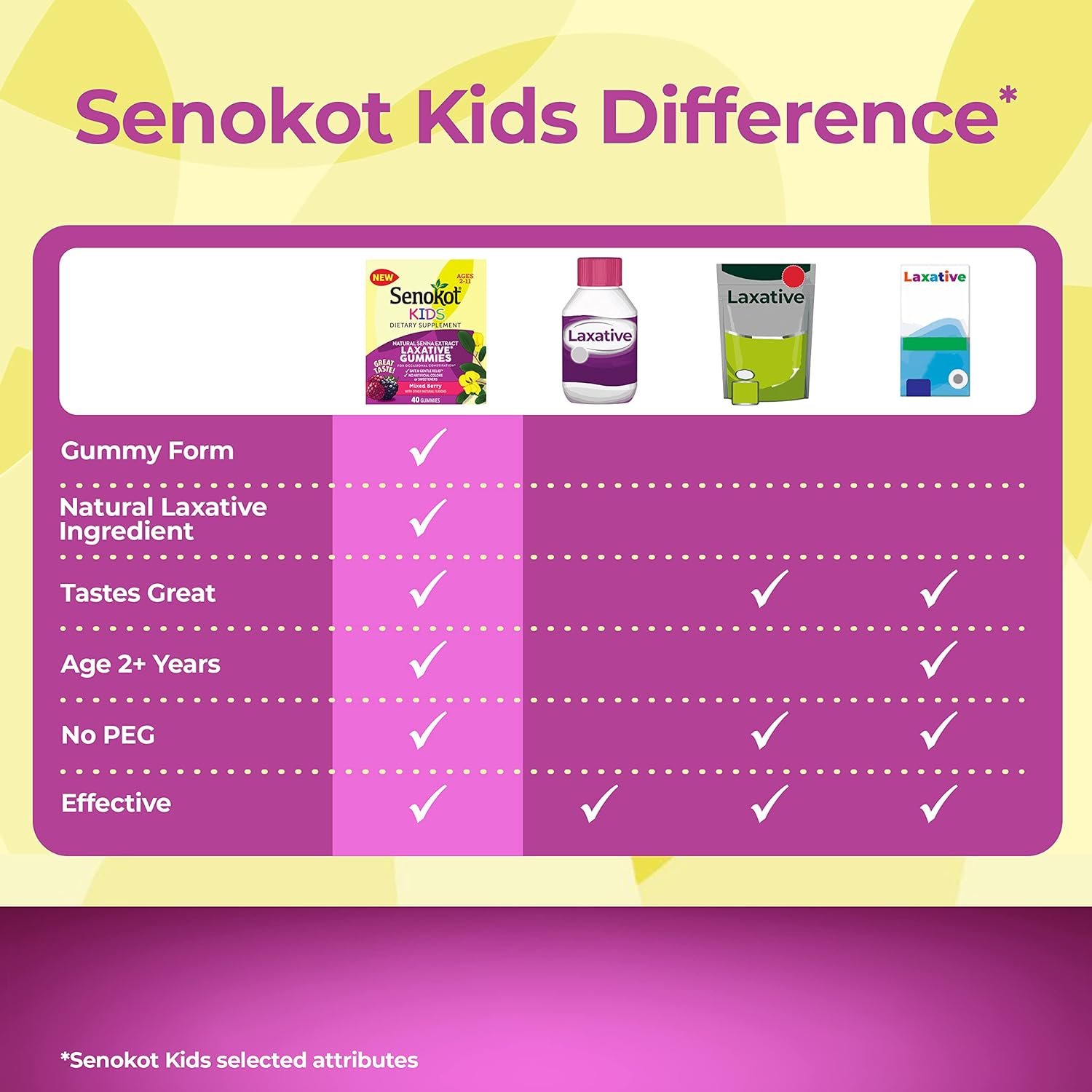 - Kid-Tested Great Taste: Kids have approved the great taste of Senokot Kids Mixed Berry Laxative Gummies – use as directed