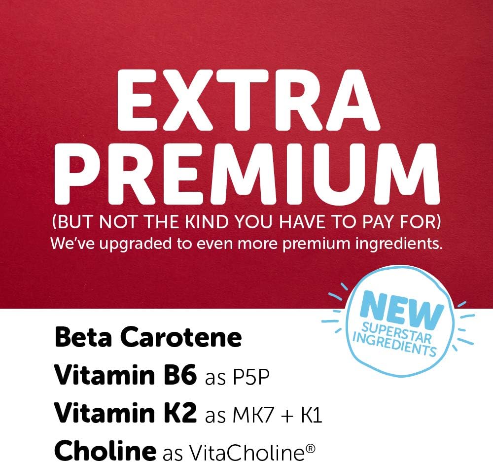 - All new upgraded kids formula Now our vitamins include even more premium Ingredients: beta carotene, Vitamin B6, Vitamin K2, and Choline (packing may vary)
