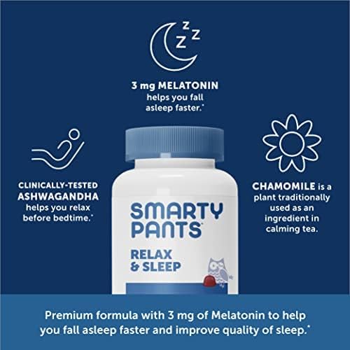 - SmartyPants Relax & Sleep* is a premium, dual-benefit gummy that helps you unwind before bedtime and fall asleep faster.* Packaging may vary.