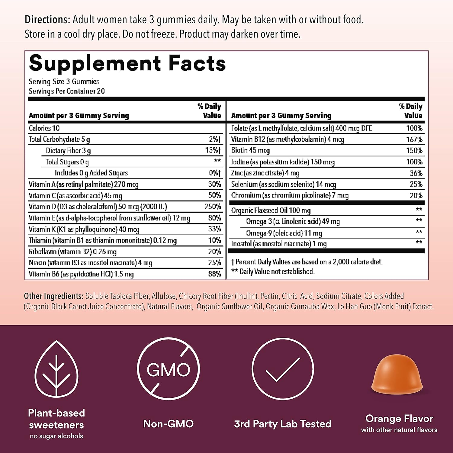 - Directions: Adult women take 3 gummies daily. May be taken with or without food. Store in a cool dry place. Do not freeze. Product may darken over time.