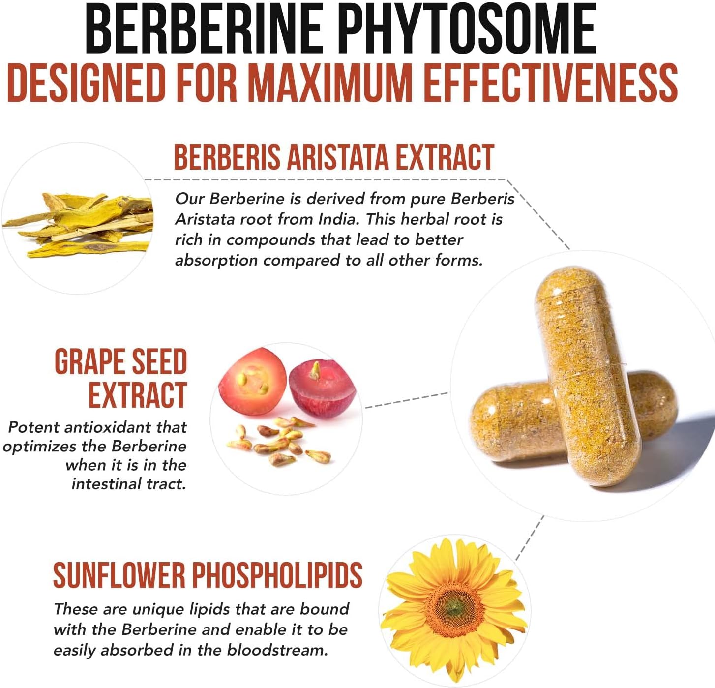 - 9.6X HIGHER ABSORPTION COMPARED TO STANDARD BERBERINE: In a clinical trial our Berberine phytosome was shown to have 9.6X (960%) higher absorption compared to standard Berberine.