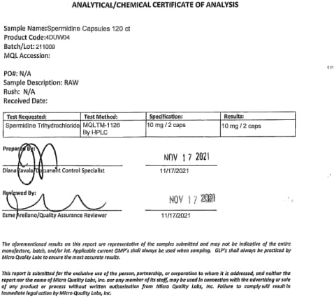 USA Proud: Our Spermidine capsules are manufactured / tested in the USA, Gluten Free, and are Non-GMO