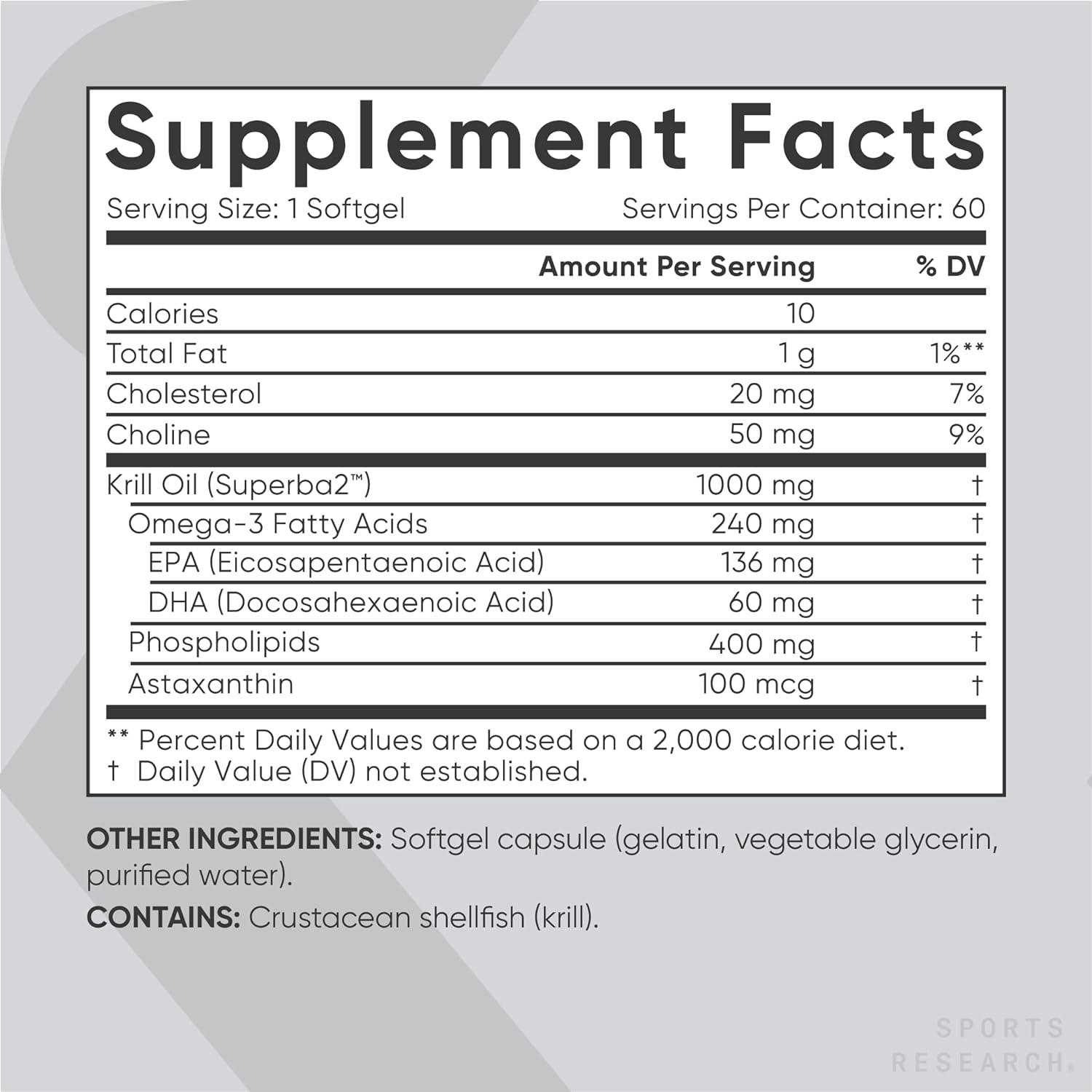Sports Research Antarctic Krill Oil Omega 3 Softgels 60 Capsules