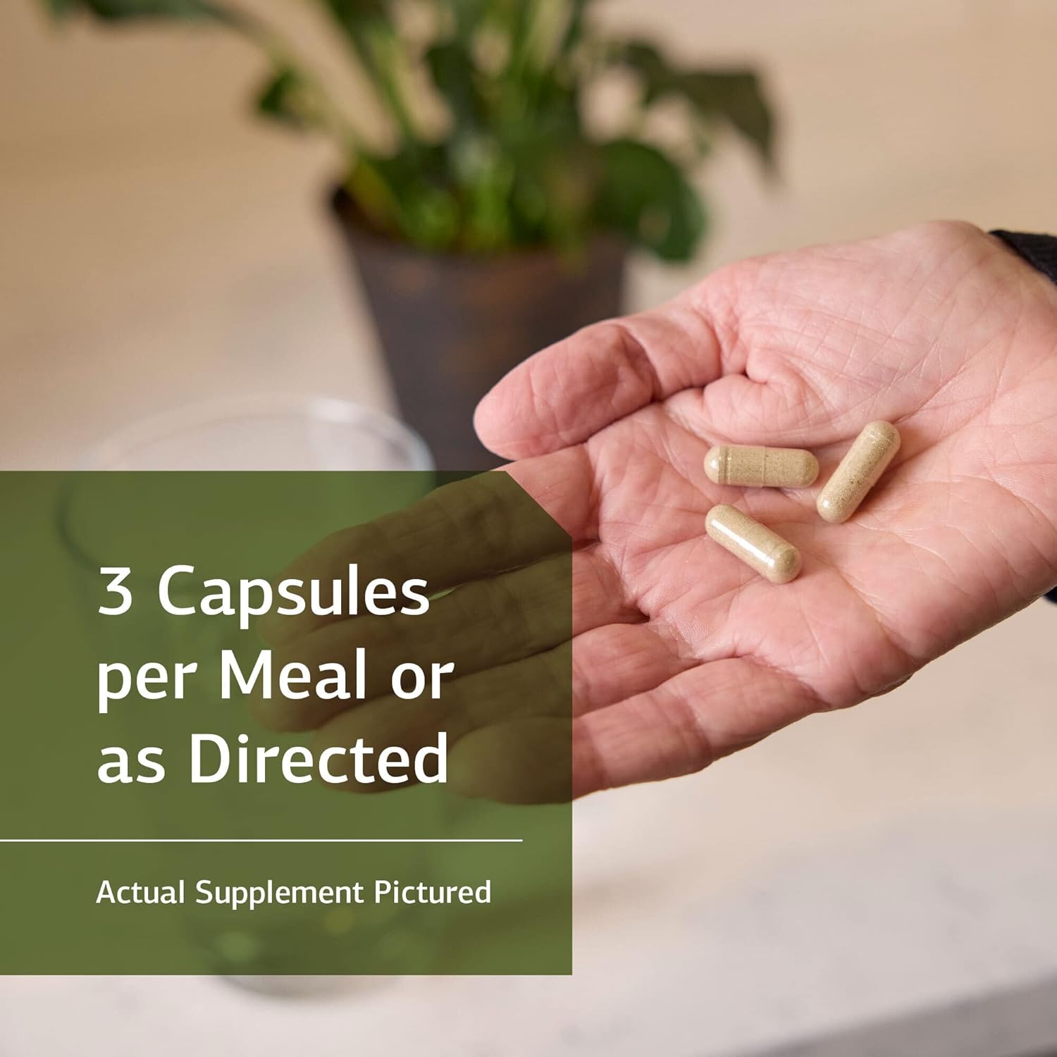 Three capsules per meal, or as directed.