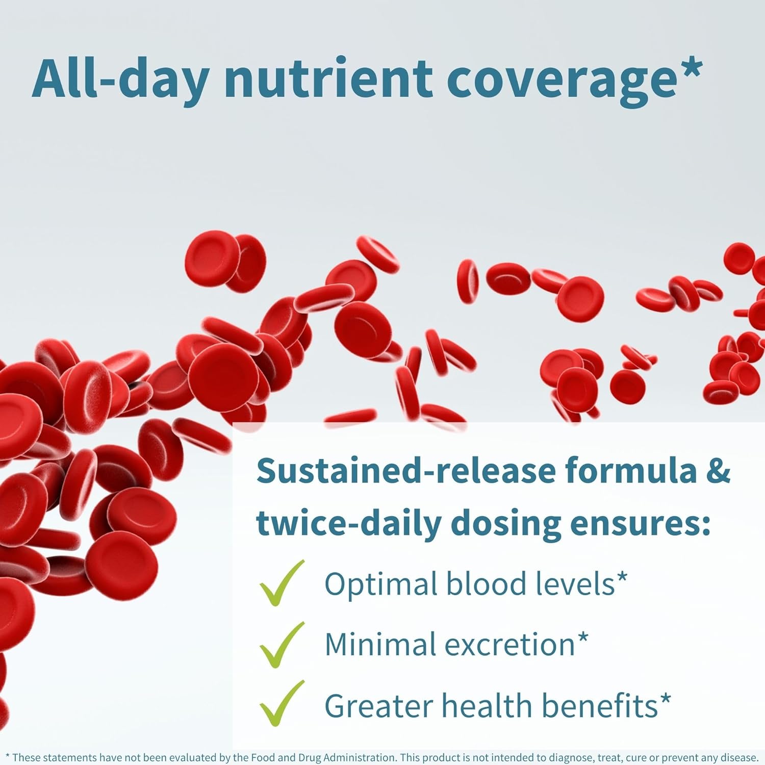 - SUSTAINED RELEASE provides all-day nutrient coverage and twice daily dosing optimises B12 levels