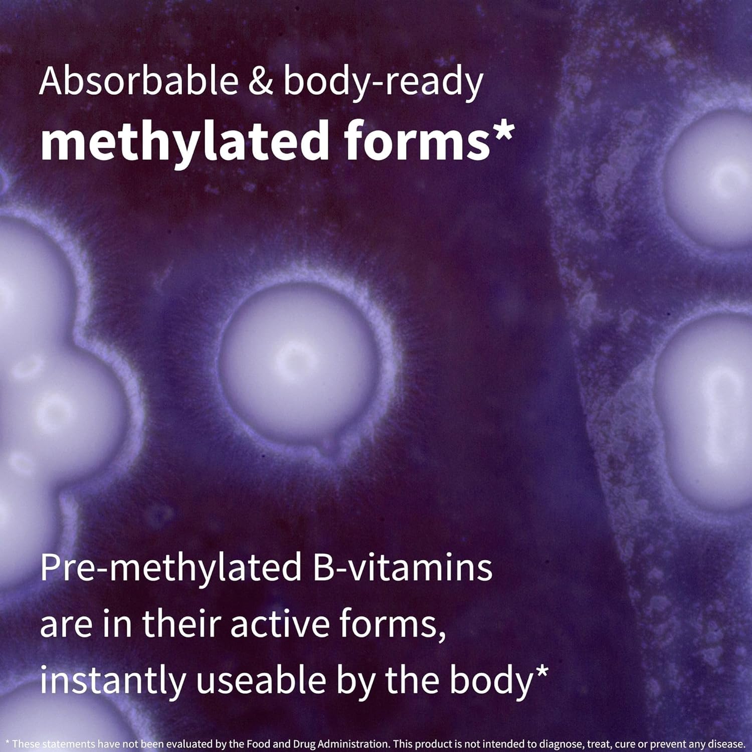- METHYLATED VITAMIN FORMS that the body utilises immediately: bioavailable folate as methylfolate & methylcobalamin (Vit B12) - no poorly absorbed cyanocobalamin