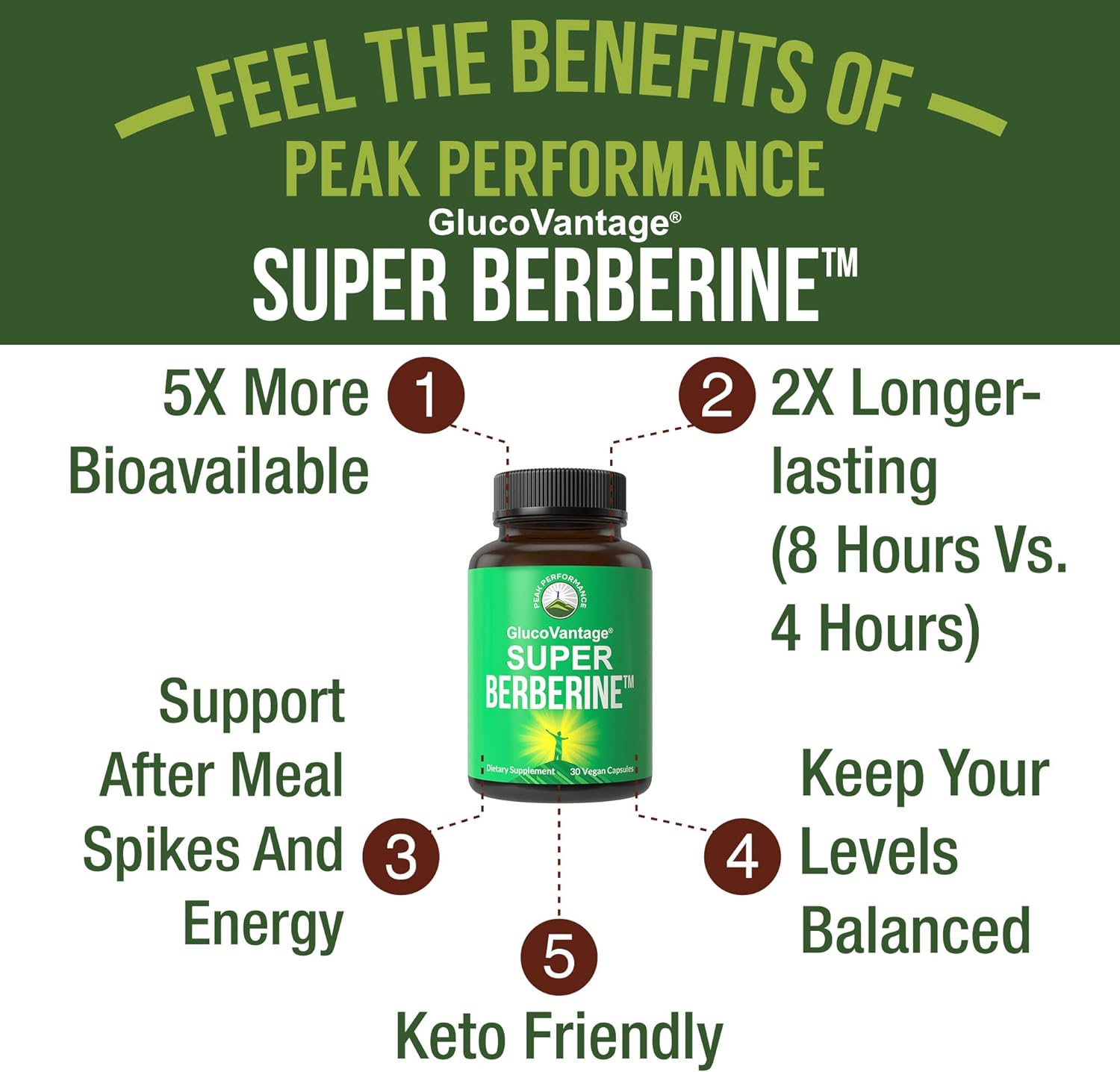 - Why not 5X your berberine absorption? Peak Performance GlucoVantage Super Berberine contains Dihydroberberine (DHB), an active metabolite of berberine. Compared to regular berberine, DHB has shown to be up to 5x more bioavailable/absorbable, and 2x longer-lasting (8 hours vs. 4 hours)