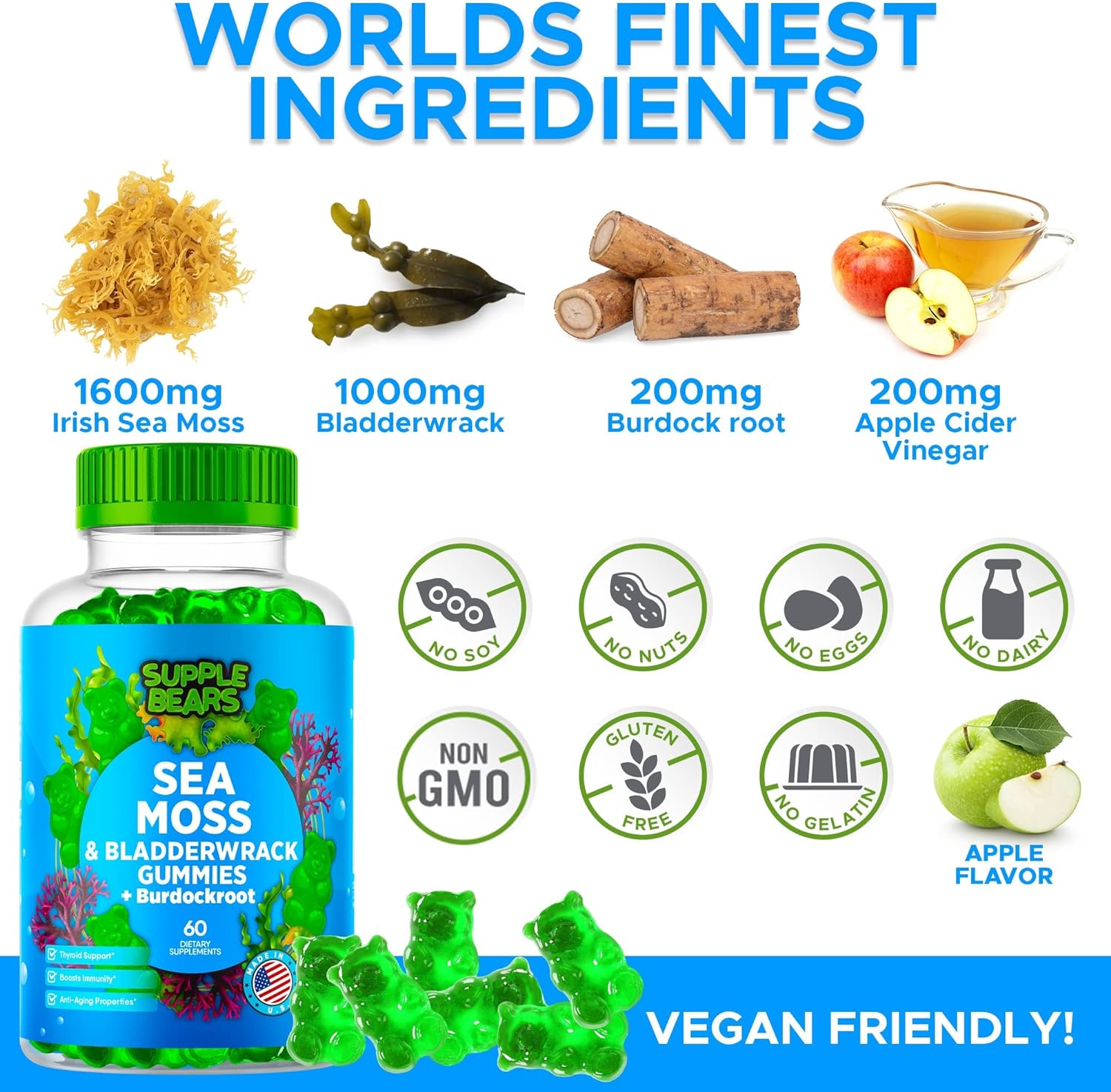 Supplebears Sea Moss Burdock Root + Bladderwrack 60 Gummies