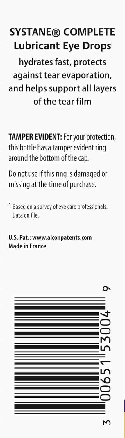 Introducing Systane Complete PF Lubricant Eye Drops. Made up of tiny, nano-sized droplets, each soothing drop forms a matrix of protection across the entire eye surface. Systane Complete delivers optimal dry eye relief, provides fast hydration and tear evaporation protection. Single-use vials a great for on the go relief of dry eyes.
