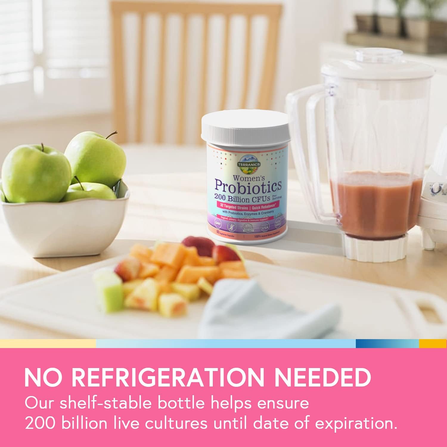 - Delayed Release & Shelf Stable: Each vegan capsule of Terranics quick rebalance women’s probiotics is scientifically made to give probiotics an added edge and the vitality needed to survive acid & bile so they can make it to your small intestine and colon. Our shelf-stable bottle helps ensure 200 billion live cultures per serving until date of expiration. No refrigeration required.