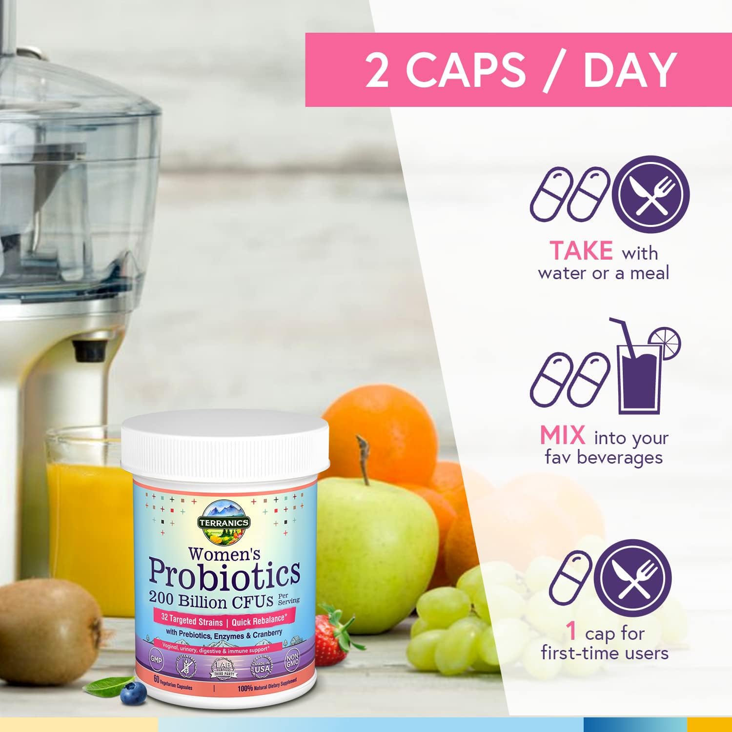 Terranics Daily Probiotics for Women, 200 Billion 32 Strains Womens Probiotics,60 capsules