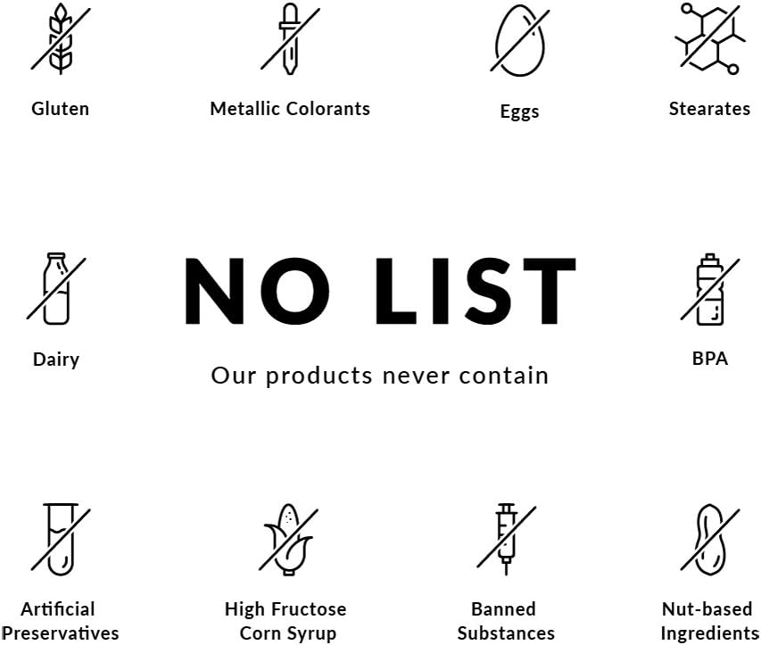 - Free From: Doesn't contain gluten, eggs, tree nuts, peanuts, dairy, soy, fish, or shellfish