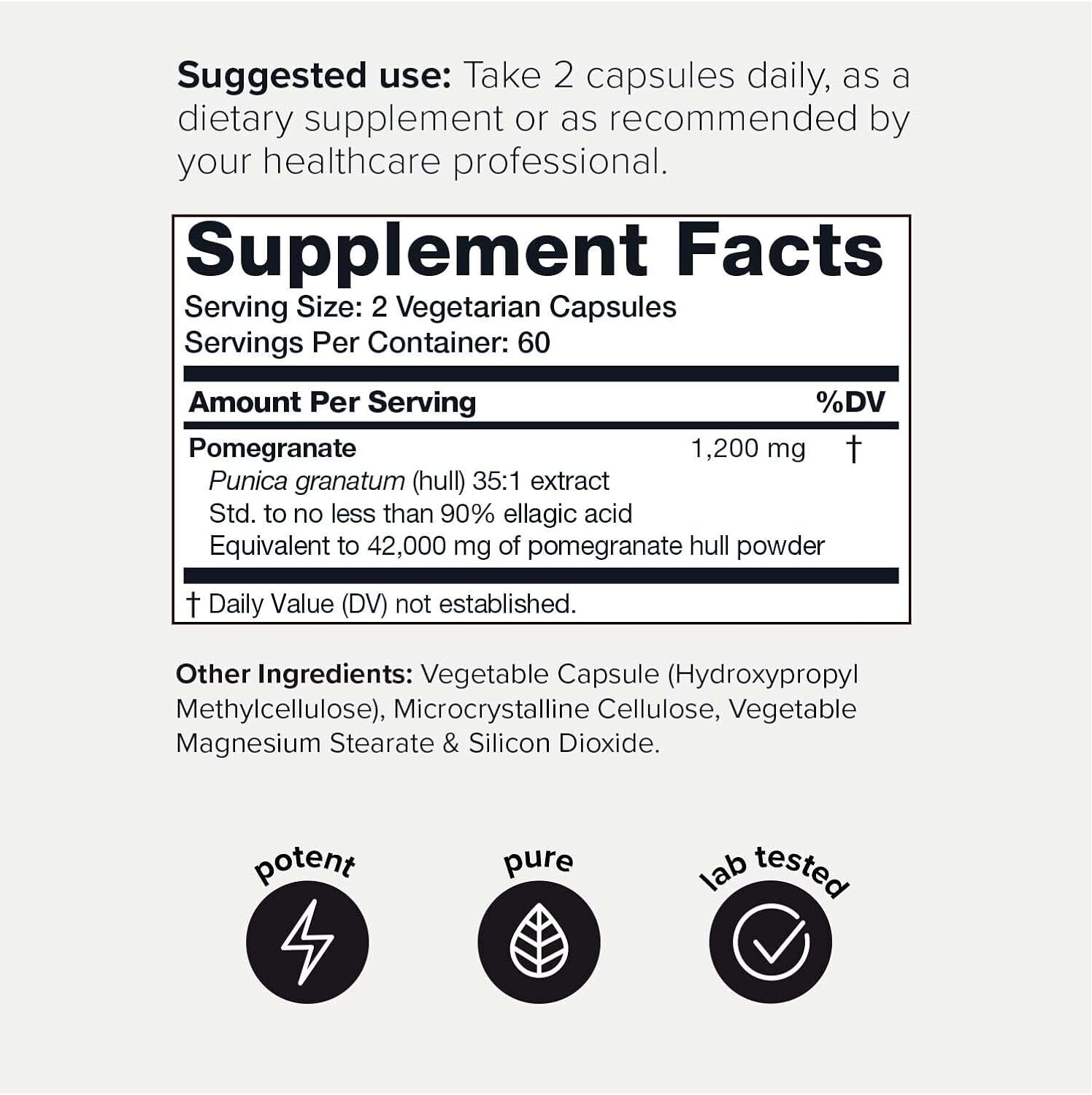 - More Ellagic Acid = More Value and Benefits - Ellagic acid is one of the active compounds best known for giving pomegranate its health-promoting benefits. Each serving of our 1200 mg pomegranate extract gives you a minimum of 1,080 mg of ellagic acid, making this one of the most potent pomegranate supplements available.