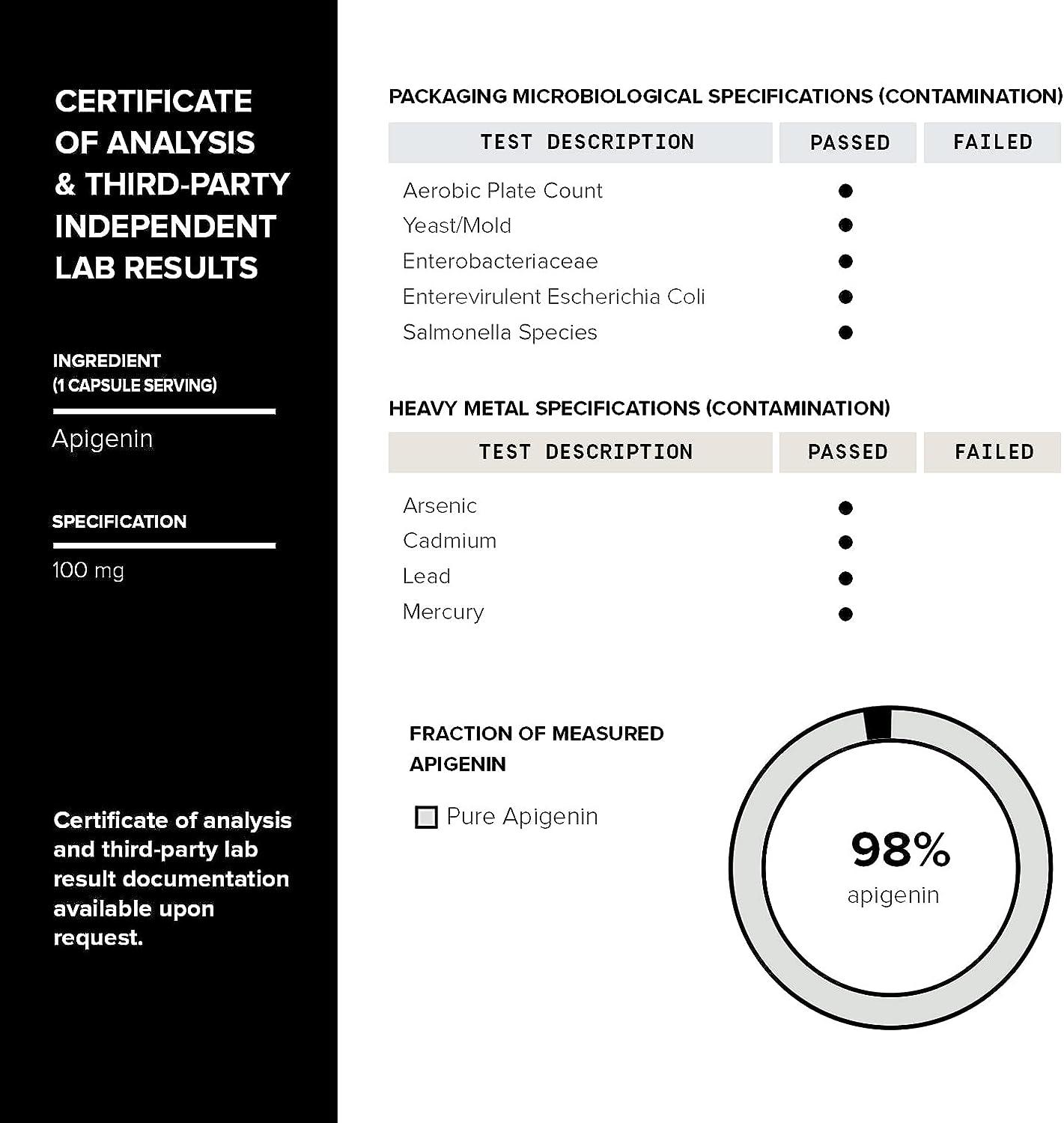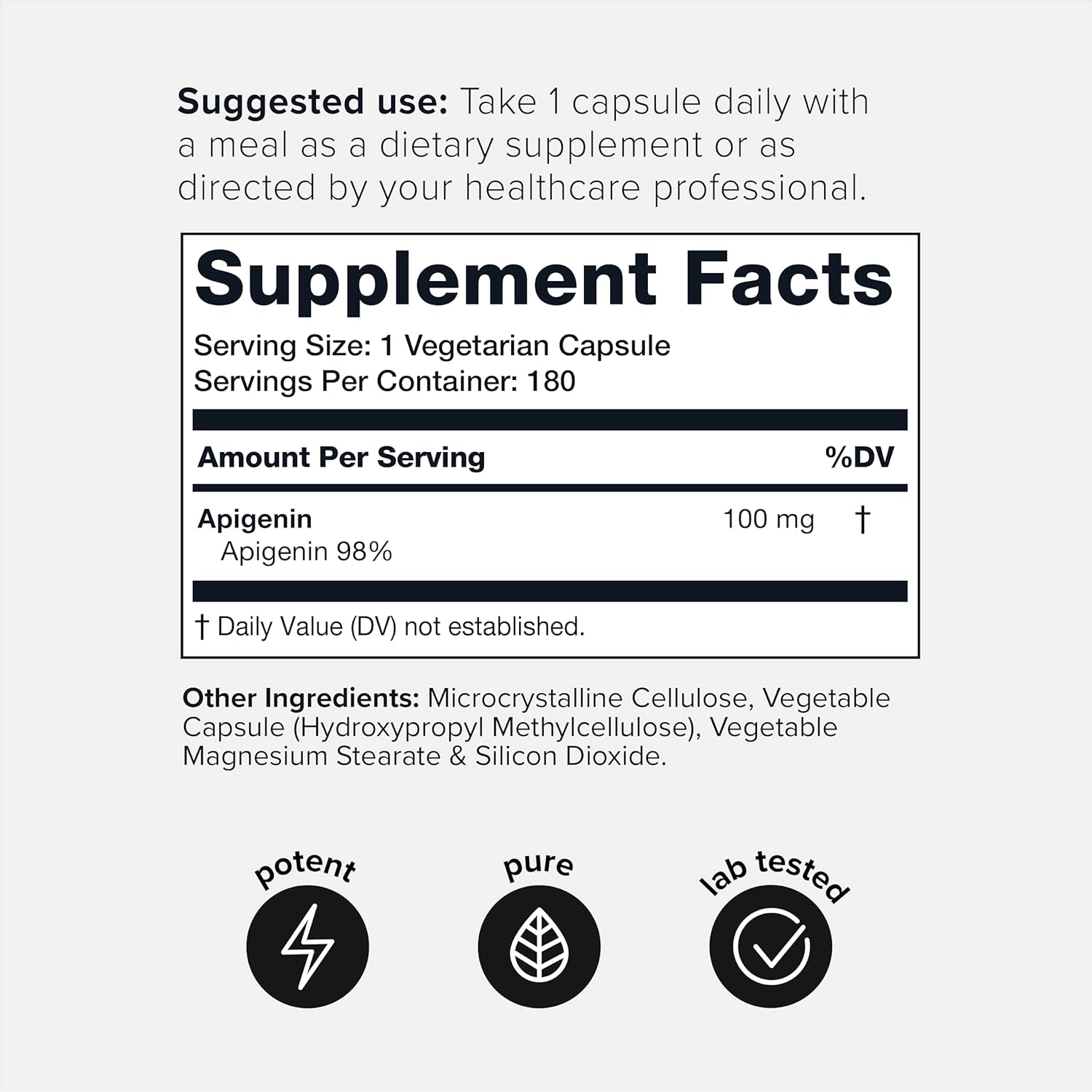 - The Highly Purified Form of Apigenin - Our apigenin contains an unprecedented purity level of 98%+. Higher purity means more of the active compounds in each serving that give apigenin its powerful properties.