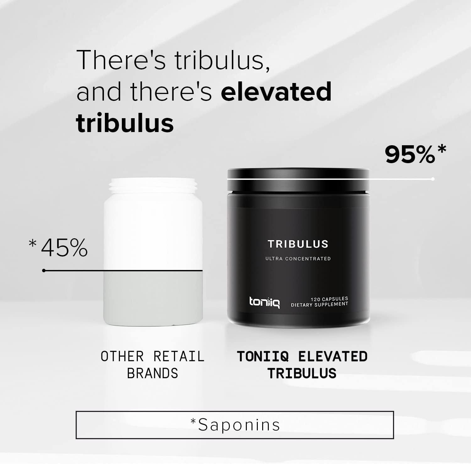 - The Highly Active Form of Tribulus - Toniiq Tribulus is a super-concentrated extract. It contains an unprecedented 95% saponins, the main active compound that is commonly attributed to its powerful health benefits.* Other tribulus contain less than 45% saponins!
