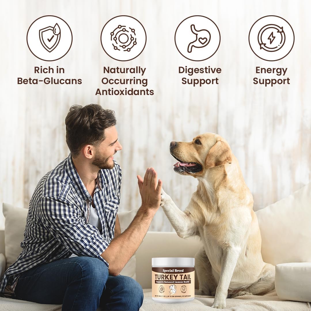 - For Dogs & Cats of All Ages: Our organic Turkey Tail mushroom powder supports immune health, digestion, and overall wellness—easy to mix with any meal, no fillers or additives.