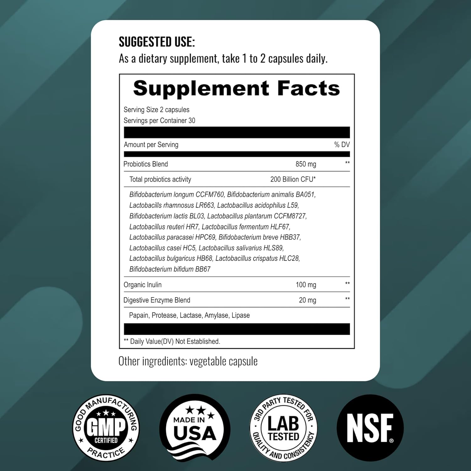 Discover the ultimate digestive health solution with Probiotic 200B CFU! This powerhouse supplement offers 200 billion colony-forming units (CFUs) per serving to support a thriving gut microbiome. Say goodbye to digestive discomfort and hello to improved nutrient absorption.