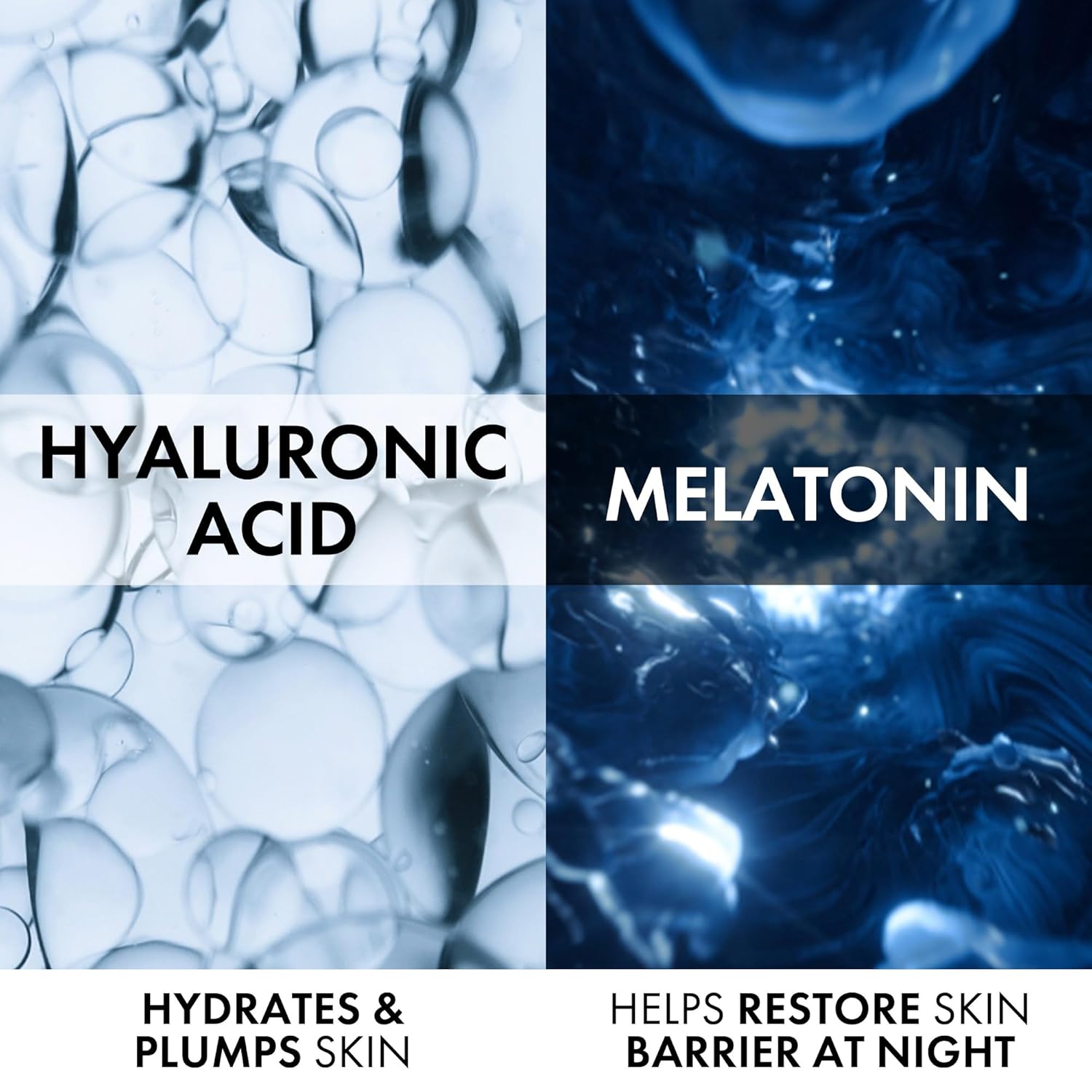 Wake up to intensly hydrated & plumped skin with this night moisturizer. With Melatonin, Pure Hyaluronic Acid, & Minerals to restore your skin’s moisture barrier during your skin’s natural nighttime recovery process