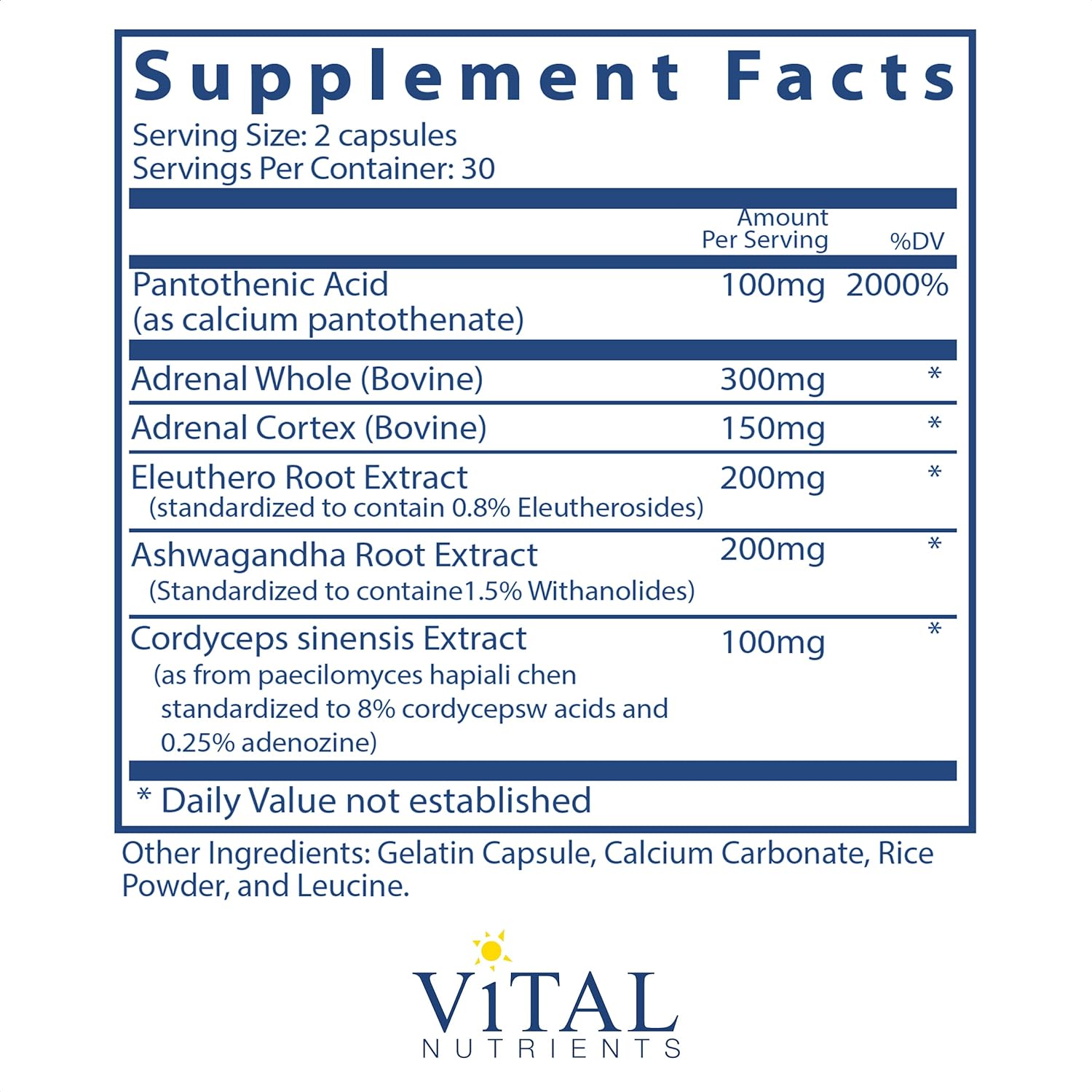 Vital Nutrients Adrenal Support Adrenal Gland Function 60 Capsules