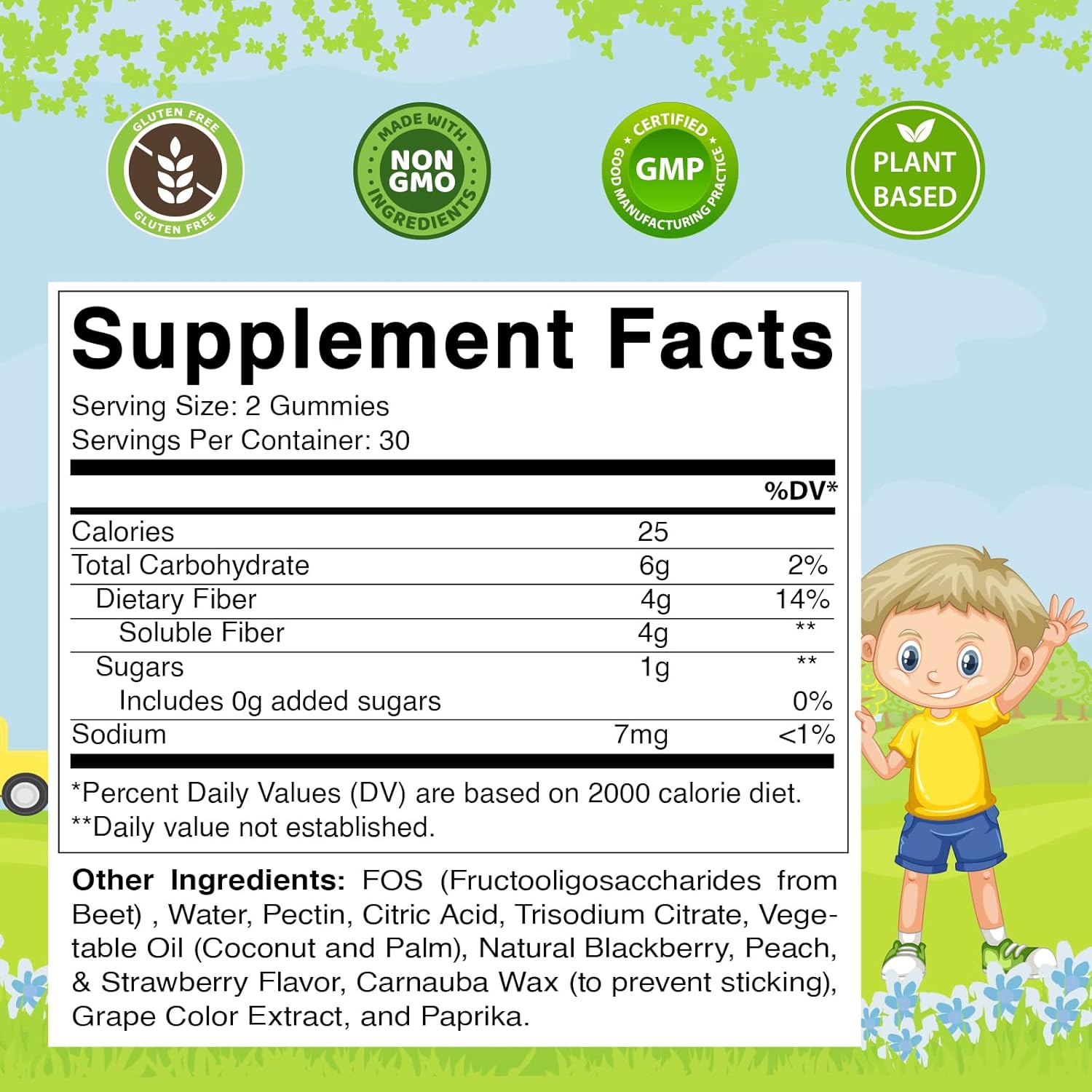 - PLANT BASED FIBER - Our gummies are made with high quality FOS (FructoOligosaccharides) from Beet.