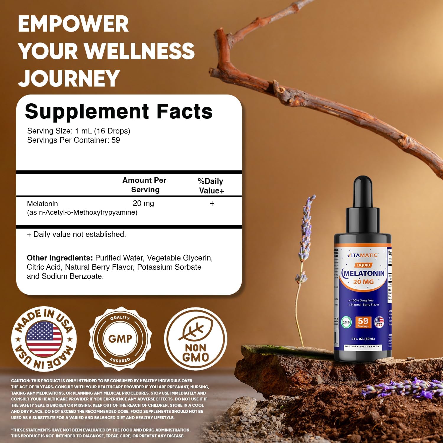 Vitamatic Melatonin 20mg Liquid Drops – 2 Fluid Ounce
